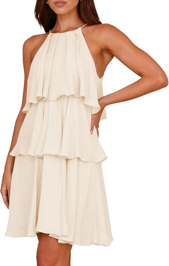 MITILLY Womens Summer 2025 Casual Sleeveless Halter Ruffle Tiered Layered Swing Mini Dress   #ad Read More »